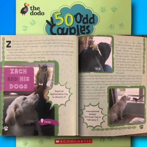 The Dodo and Scholastic team up to publish a kids book: "50 Odd Couples". The book, featuring our goldens and Zach, came out in early 2020. Click here to review the book.