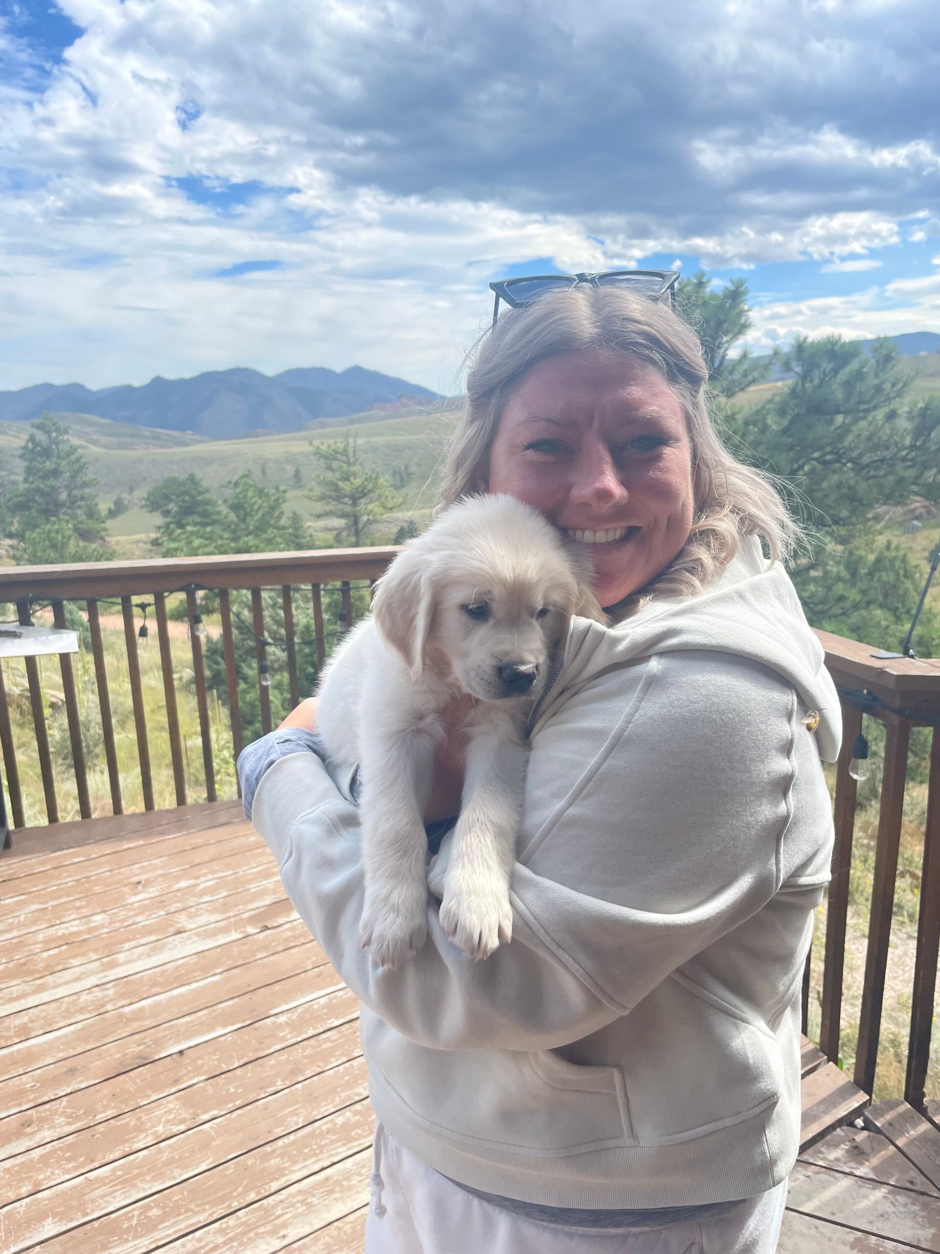 "Our dog CJ, passed away in October 2018; and we said no more puppies for us. Forward to July 2021 our son received a beautiful golden retriever, Mogul from Marlos Golden, and we fell in love with her right away. She is a sweet, loving, gentle soul, and we needed one of our own. We adopted our little Maggie Rose in September 2023 and are so in love with her. We went to Colorado to pick her up and we spent some time with the Marlos Golden family, they are dog loving owners not just breeders, we were able to witness the day to day and hour by hour nurturing of these special puppies. I would highly recommend them."